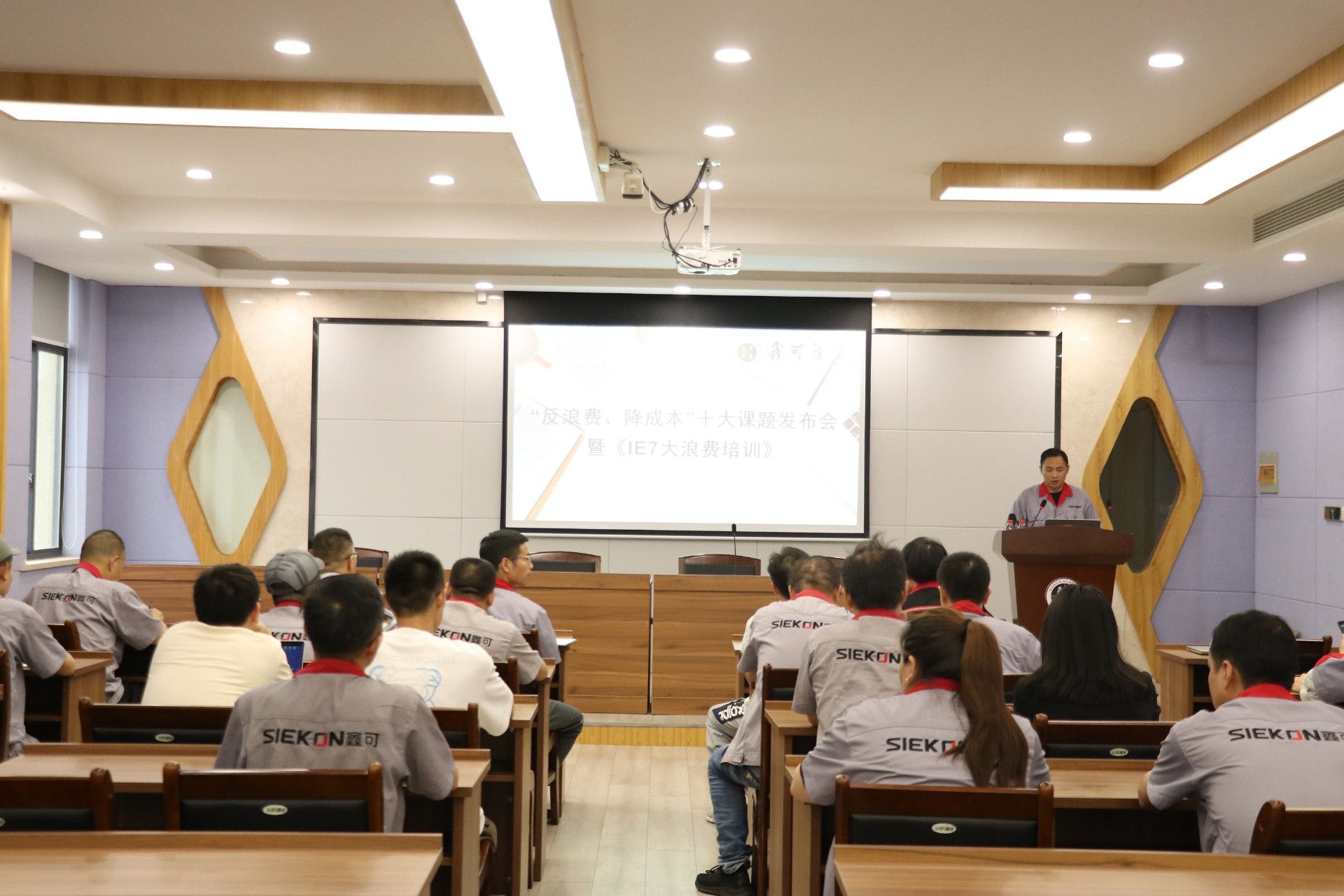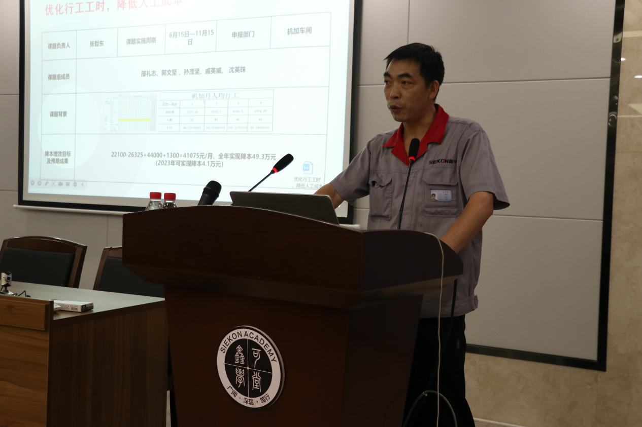 為推進(jìn)落實(shí)在鑫可20周年慶典上發(fā)布的“反浪費(fèi)、降成本”行動(dòng)方案,2023年7月5日晚,公司在鑫可學(xué)堂舉行了“反浪費(fèi),降成本”十大課題發(fā)布會(huì)暨《IE八大浪費(fèi)》培訓(xùn)活動(dòng)。公司常務(wù)副總經(jīng)理馬強(qiáng)、副總經(jīng)理兼經(jīng)營(yíng)管理委員會(huì)副主任陳光耀、副總經(jīng)理龔峰、財(cái)務(wù)總監(jiān)郭蓮芳、行政總監(jiān)黃建宇、各部門(mén)負(fù)責(zé)人及各降本課題組成員近60人參加了本次發(fā)布會(huì),副總經(jīng)理陳光耀主持了本次發(fā)布會(huì)。