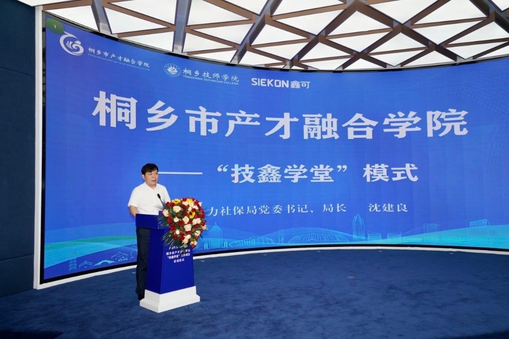 6月11日下午,桐鄉(xiāng)市產(chǎn)才融合學(xué)院——“技鑫學(xué)堂”正式啟動(dòng)。桐鄉(xiāng)市政協(xié)副主席商國(guó)明,桐鄉(xiāng)市人力資源和社會(huì)保障局黨委書記、局長(zhǎng)沈建良,桐鄉(xiāng)市政協(xié)社會(huì)法制與民宗港澳臺(tái)僑委員會(huì)副主任黃大奇,桐鄉(xiāng)市教育局黨組成員、總督學(xué)王華,桐鄉(xiāng)市慈善總會(huì)駐會(huì)副會(huì)長(zhǎng)徐建中,桐鄉(xiāng)市經(jīng)濟(jì)開發(fā)區(qū)管委會(huì)、高橋街道辦事處副主任朱正,桐鄉(xiāng)市人力資源和社會(huì)保障局、黨委委員俞健出席儀式,共同見證這一重要時(shí)刻。