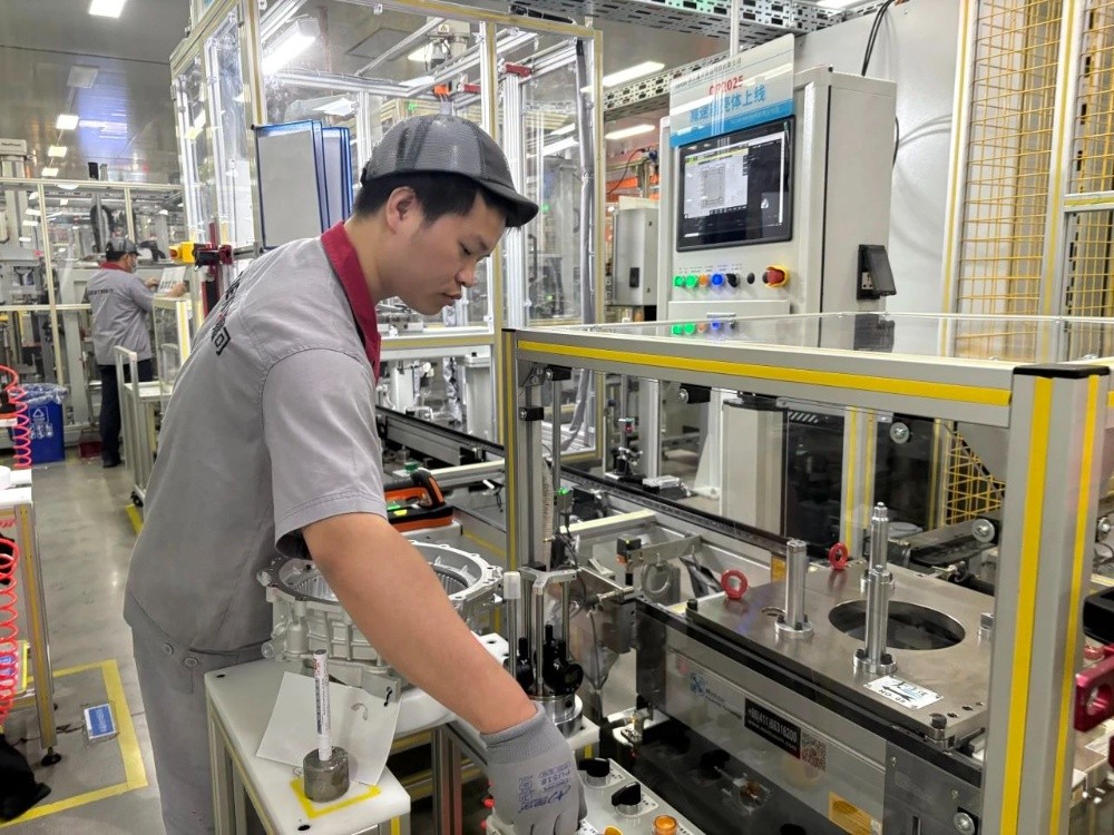 作業過程中,謝作亮不斷展現著自己的 “技術智慧”。在OP1050工位,機器運轉的轟鳴聲中,他敏銳察覺到銷軸鉚接異常。他主動與工程師組成攻堅小組,日夜鉆研,最終通過調整銷軸長度,讓鉚接恢復正常;在 OP1040作業時,他又以高度的警覺性發現銷軸放置定位工裝有掉落風險,迅速反饋后,一套規范的防護措施及時到位,消除了安全隱患。在T52項目試生產跑線階段,他更是化身“多面手”,協助工藝做測試標件和臺架磨合收集數據,對產線MES運行突發情況處理、各工位防錯措施驗證駕輕就熟。此外,他還將現場零部件管理得井井有條,把可重復使用的和不良零部件仔細歸類,不良品及時退庫,徹底杜絕了生產時混料、用錯物料的情況。